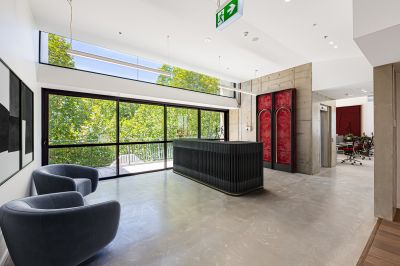 A thoughtful refurbishment delivers warm, sophisticated interiors with an industrial edge. Immaculately presented, the space features polished concrete floors, stylish ceilings and sleek modern finishes throughout. Large balconies on both the front and rear of the building create exceptional indoor-outdoor flow and provide rare, oversized entertainment areas - ideal for staff breakout space or client functions.