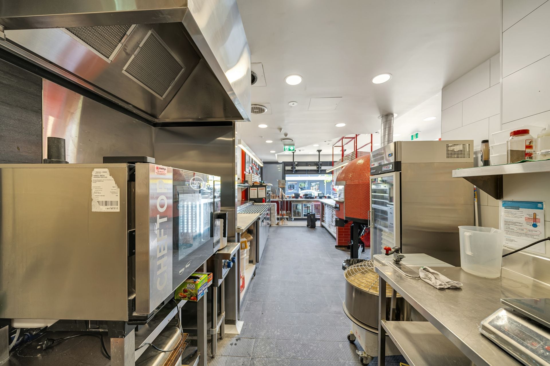 - Fully equipped kitchen with grease trap, exhaust, gas, and cool room.